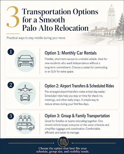 Temporary Transportation Solutions for Relocating Professionals in Palo Alto infographic